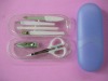 This kit contains basic tools you need for normal grooming, manicure or pedicure.Suitable for travel and home use. Kit Contains: 1. 1 x small clipper 2. 1 x cuticle trimmer 3. 1 xscissors 4. 1 x Nail pick 5. 1 x cuticle pusher 6. 1 x nail file